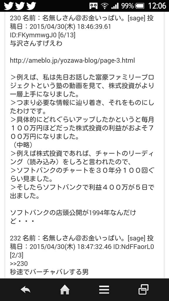 与沢翼氏が、破産状態にあると告白してから1年。現在は株で儲けているらしい。