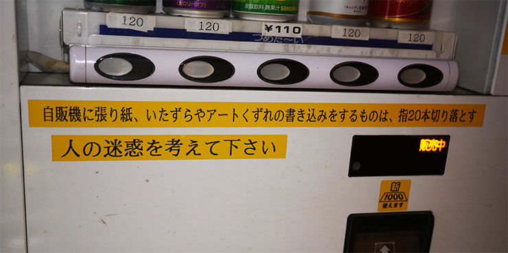 また、自販機にはさまざまな張り紙がしてあり、なかには恐ろしいことが書かれているものまである。たとえば、以下のようなことが書かれている。