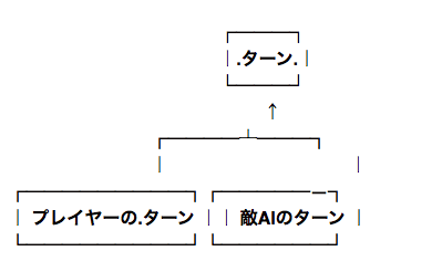 例えば、「プレイヤーのターン」と「敵AIのターン」では、「行動選択」が違うだけで「効果適用」自体は全く同じ