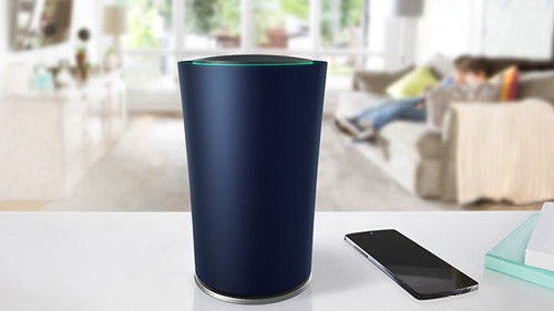 OnHubの上面はスピーカーになっており、Androidデバイスを用いた場合はOnHubが発するオーディオトーンでセットアップコードを受け取れる。電源を入れるとスピーカーの周囲が光り、OnHubはライトを4つの色に変化させてネットワークの状態などをユーザーに伝える。