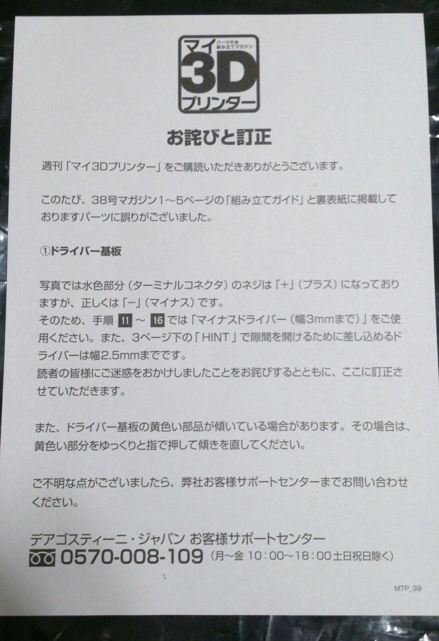 前回:週刊マイ3Dプリンター第36,37号届いたやで~