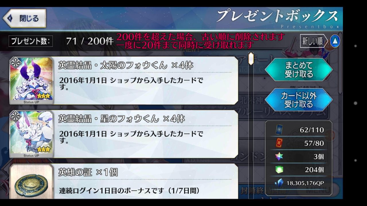 鳳凰の羽根、世界樹の種、英雄の証、虚栄の塵、竜の逆鱗