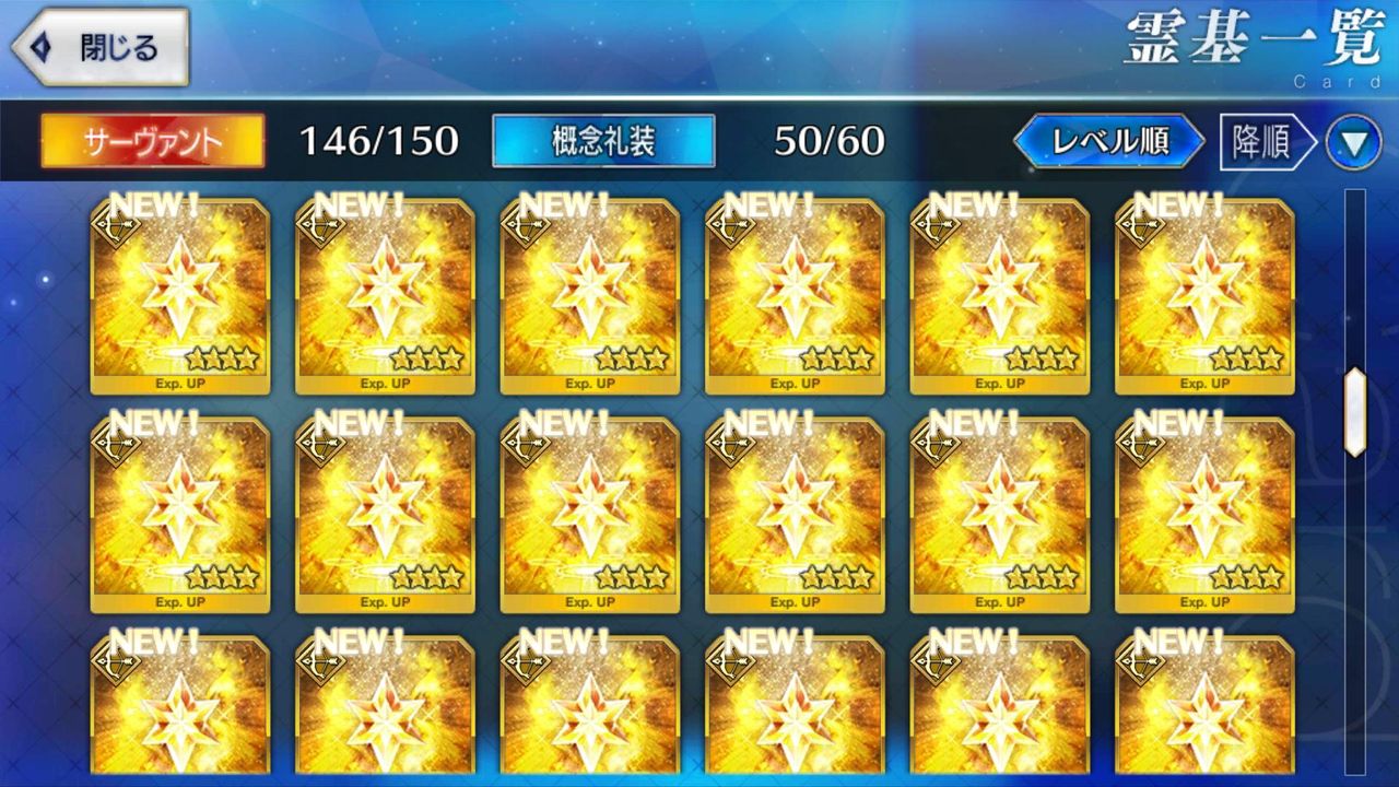 これがあるからlv60以降はなるたけ同じクラス種火使うようにしてるわ