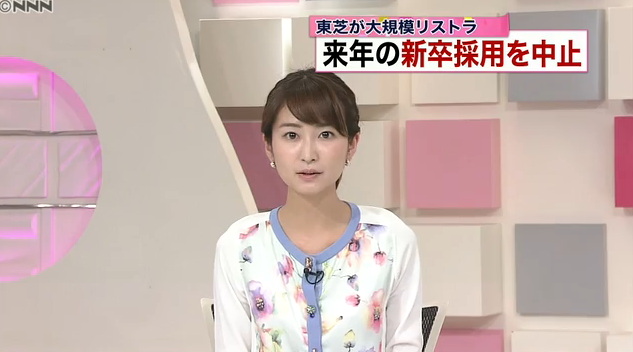 東芝では、事業売却などに伴うリストラで、グループ全体で約1万1000人の人員が削減されることになる。また、東芝本体では来年4月入社の大学生、大学院生の新卒採用は中止する。