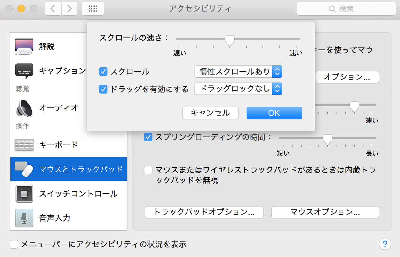 設定→アクセシビリティ→マウスとトラックパッド→トラックパッドオプション→ドラッグを有効にする