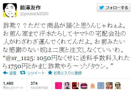 送料値上げした時に、タダで商品が届くと思ってんじゃねえとブチ切れて炎上してたな