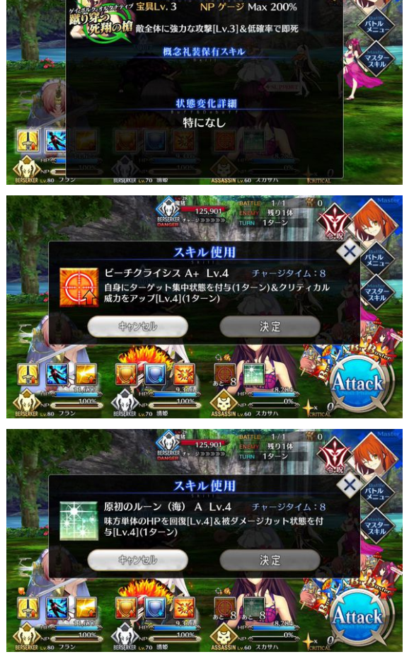 おぉ全体宝具きたか、スキルは第三スキル次第か・・・