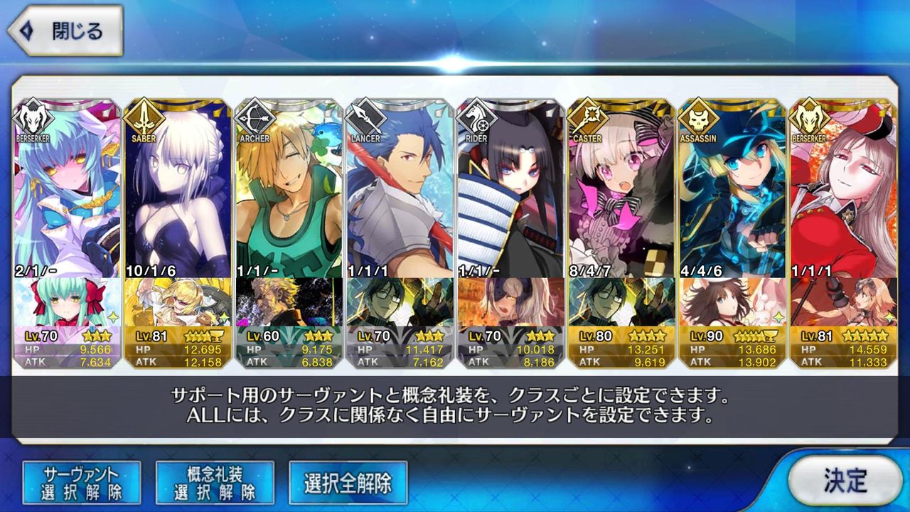 まともに育ってる特効鯖イシュタル子ギルエミヤと弓に固まりすぎててサポート特効礼装持たせる奴いなくて困るわ