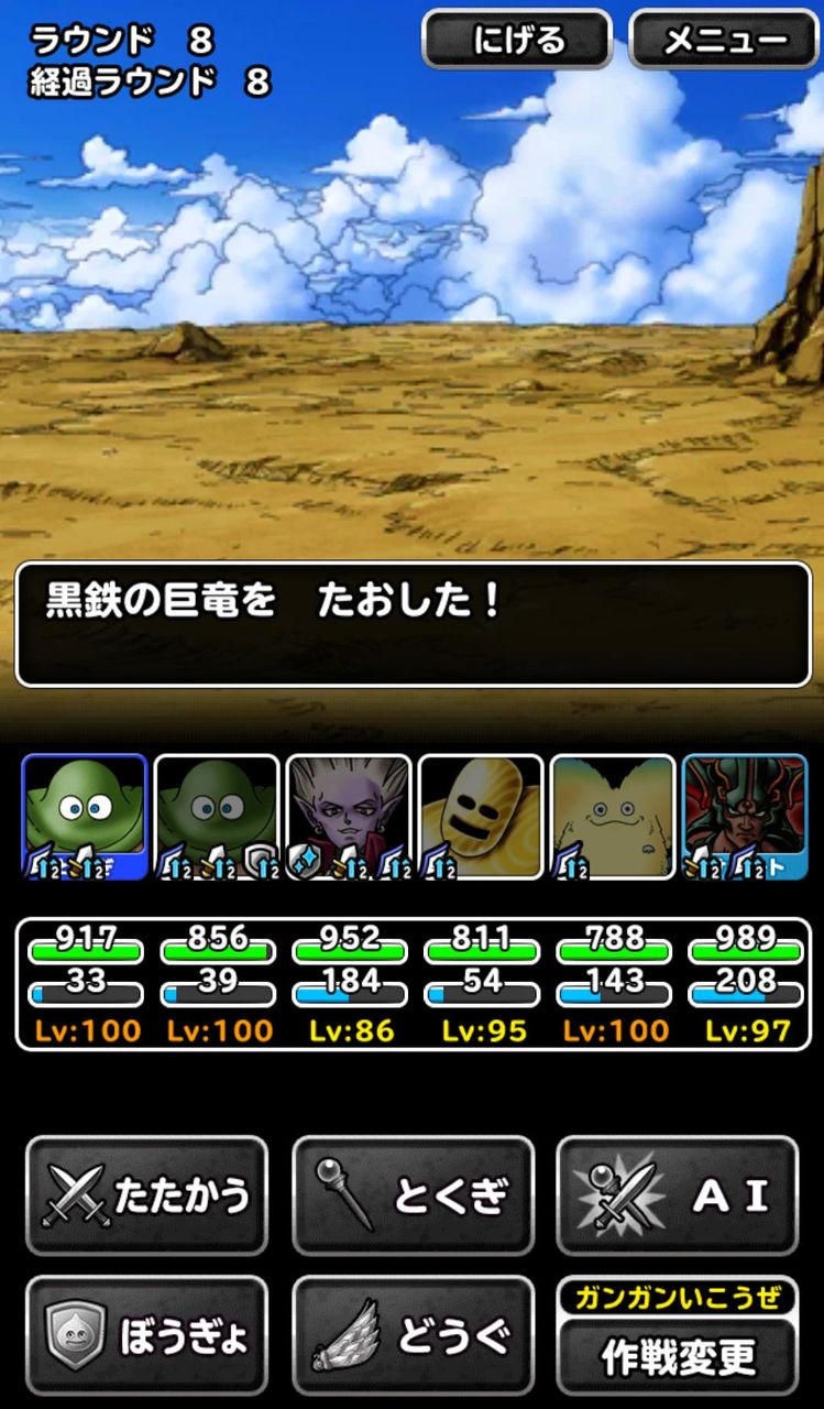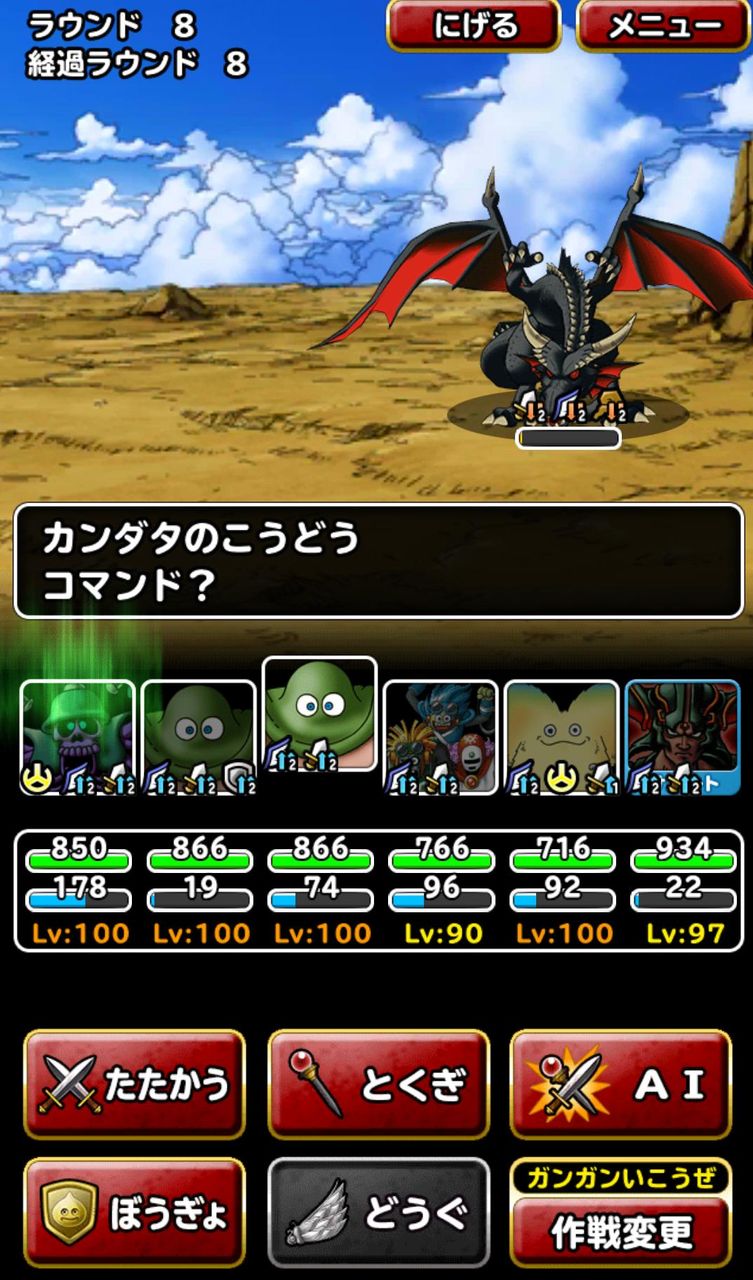 1回目の怒り後マポとカンダタでピオリムメイザーで波動、ドレアムがメイザーより先に動いた場合は自己バイキ