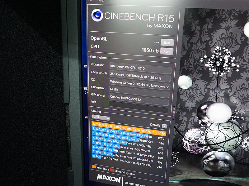 今回、デモが行なわれているのは、Knights Landingでは下位モデルとなるXeon Phi 7210。